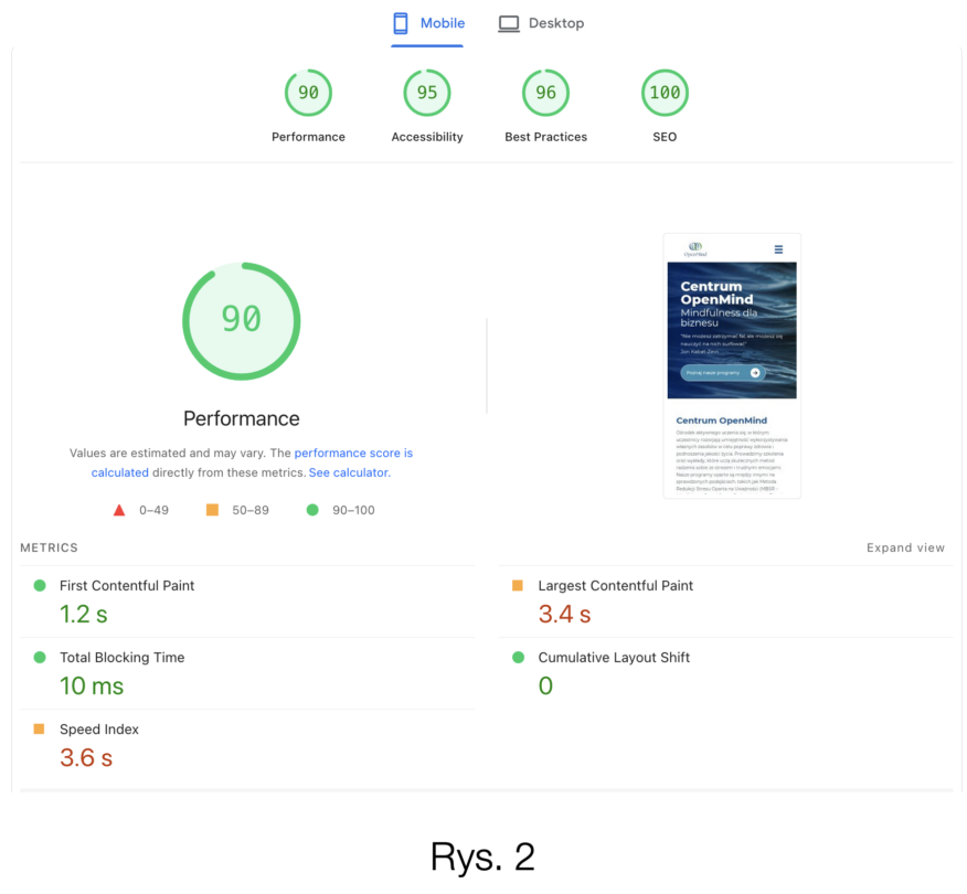 W chwila moment otrzymamy raport o czterech kluczowych aspektach naszej strony, w tym o jej prędkości.(Rys. 2)