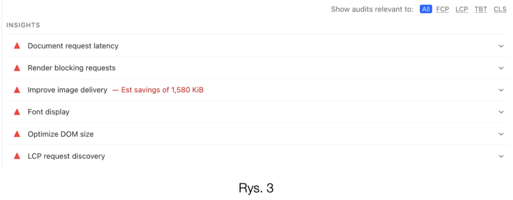 Jeśli zjedziecie w dół raportu PageSpeed zobaczycie, że przedstawia on szereg usprawnień (rys. 3), które należy wprowadzić. Są to w większości skomplikowane poprawki, które ciężko wprowadzić bez specjalistycznej wiedzy.